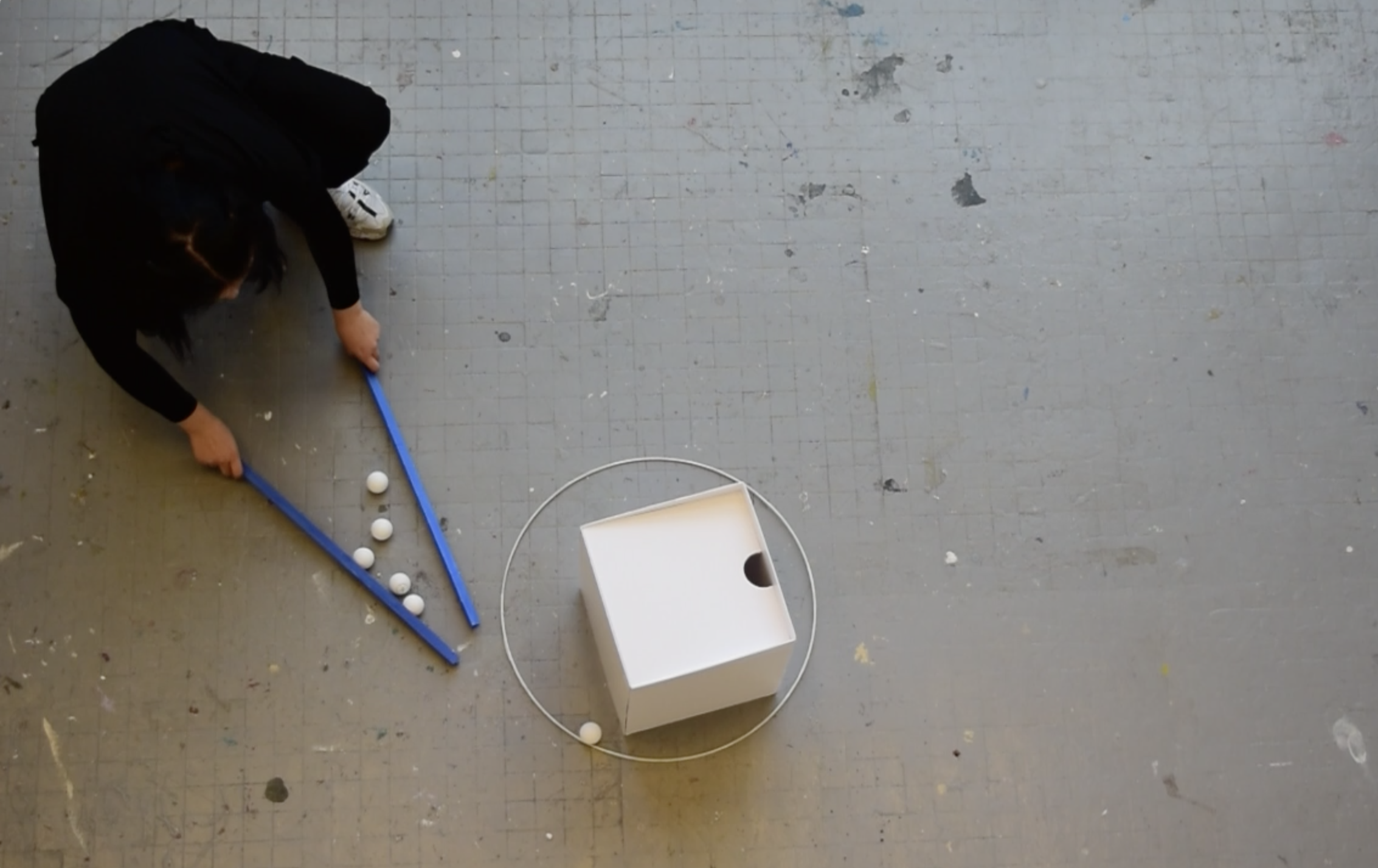 I then attempt to engage with this chaos by trying to collect all the ping-pong balls scattered throughout the space.